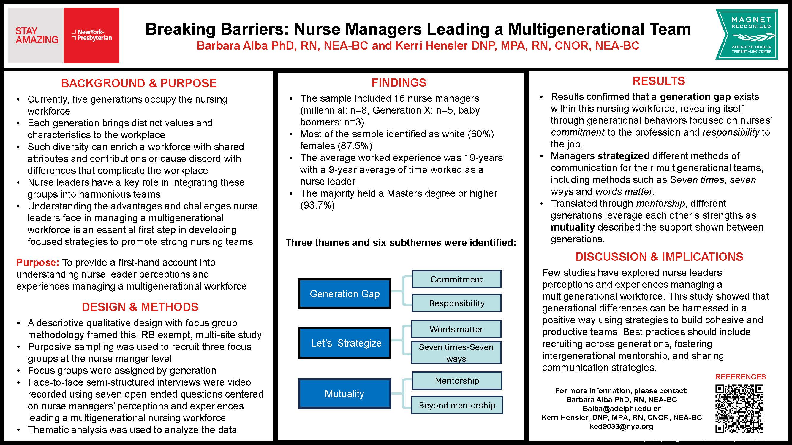 POSTER TITLE: Breaking Barriers: Nurse Managers Leading a Multigenerational Team